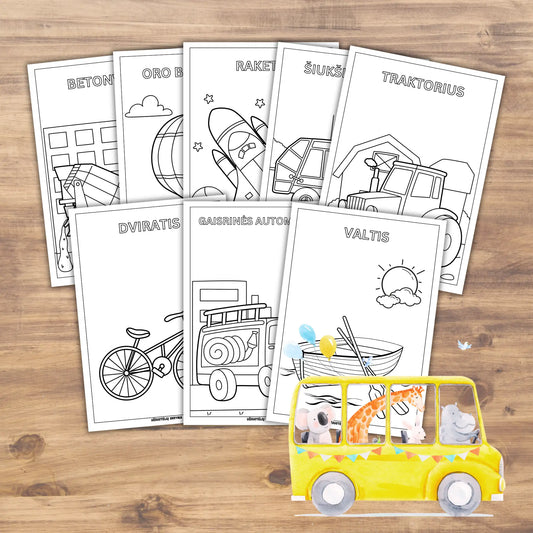 Spalvinimo knygelė "Transporto priemonės", PDF