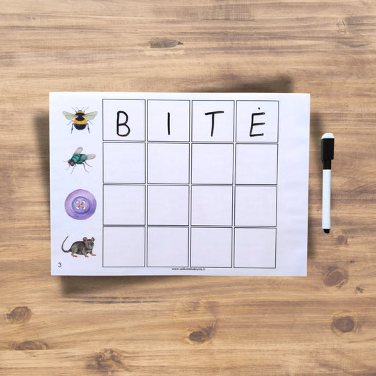 Kortelių rinkinys "Sudėk žodį iš trijų skiemenų"